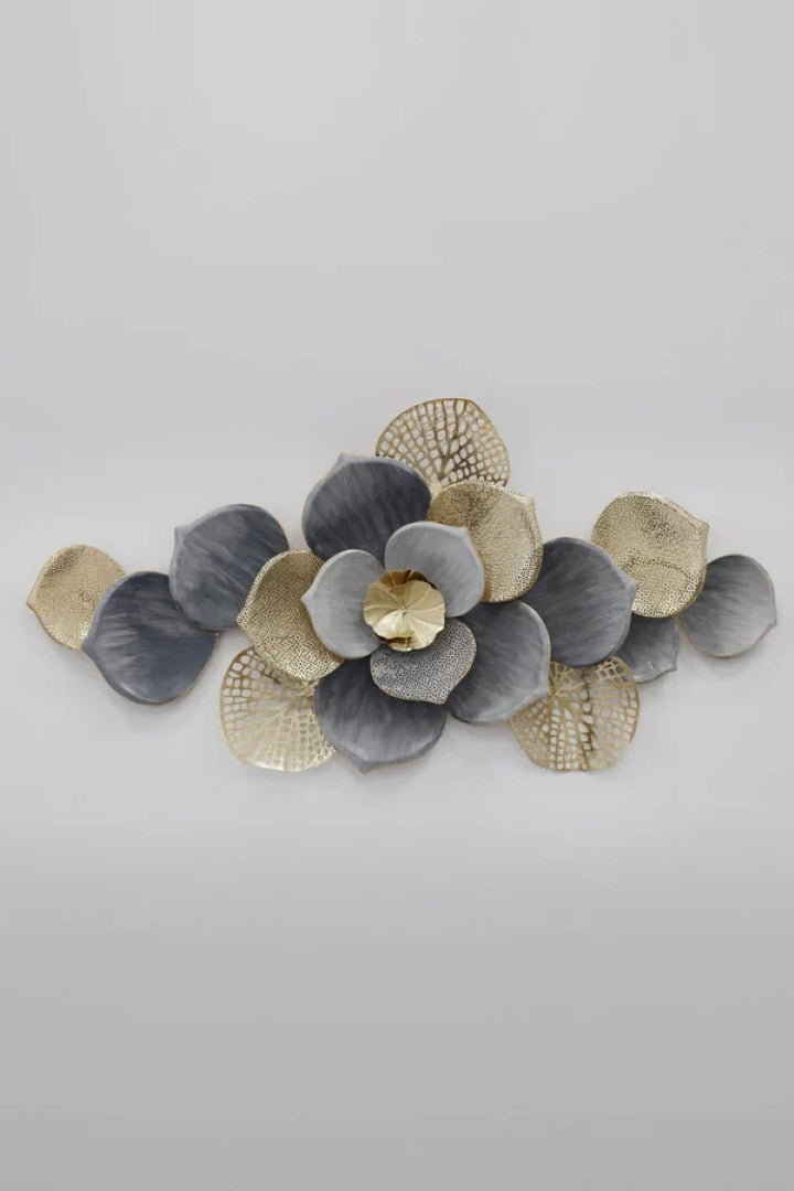 Add elegance and sophistication to your walls with this floral spray metal wall art in a luxurious grey and gold finish. Designed with layered petals that create a striking 3D effect, this piece blends modern metallic tones with artistic craftsmanship. Perfect as a centerpiece for your living room, hallway, or bedroom, it enhances any décor style with a touch of contemporary charm. Lightweight, durable, and easy to hang, this floral metal wall sculpture is an ideal choice for transforming empty walls into stylish statements.