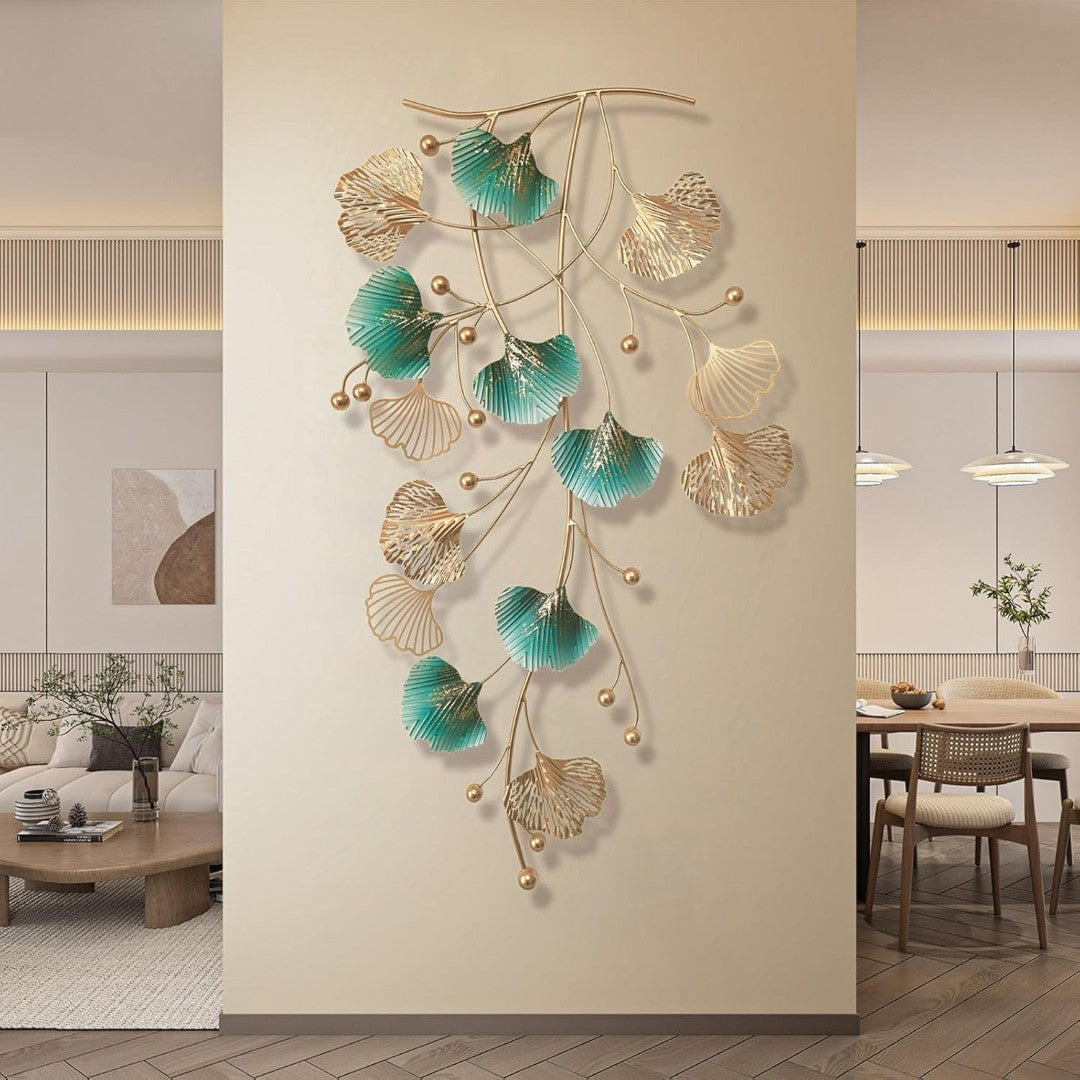 Ginkgo Leaf Metal Wall Art – Green & Gold Hanging Décor