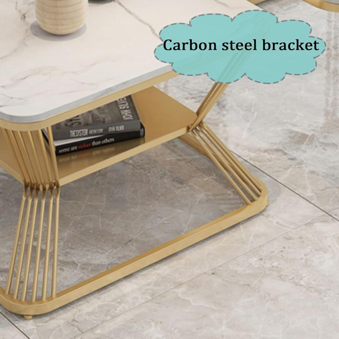 Luxury White Marble Square Coffee Table Set with Golden Frame (2 Pieces)