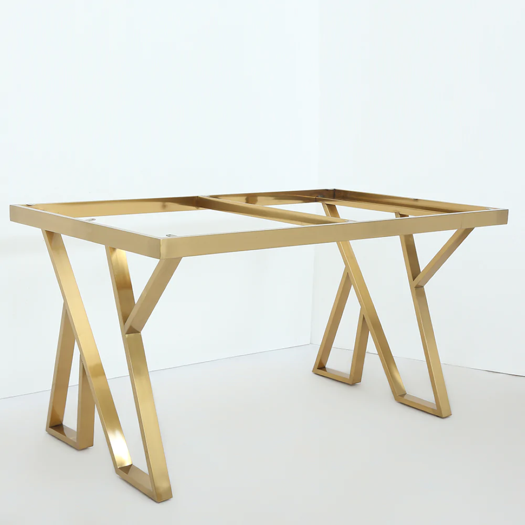 Upgrade your dining experience with this stunning black glass dining table set. Featuring a sleek black tempered glass tabletop paired with a gold stainless steel X-shaped base, this set brings modern luxury into your home. The quilted leather upholstered chairs ensure both comfort and elegance, making it ideal for family dinners, special gatherings, and stylish interiors. Designed for six people, this dining set blends durability with high-end aesthetics for a timeless addition to your dining room.